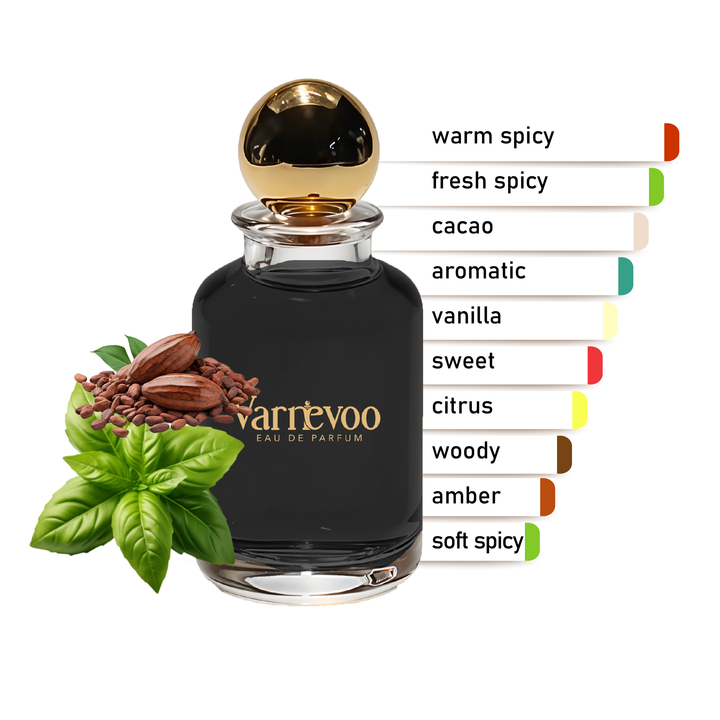 A vibrant blend of fiery pepper and fresh bergamot grabs attention, flowing into a sleek cedar-sage heart. The dry-down is a warm, creamy mix of chocolatey cocoa and tonka bean—giving Bad Aura its addictive, modern masculinity.